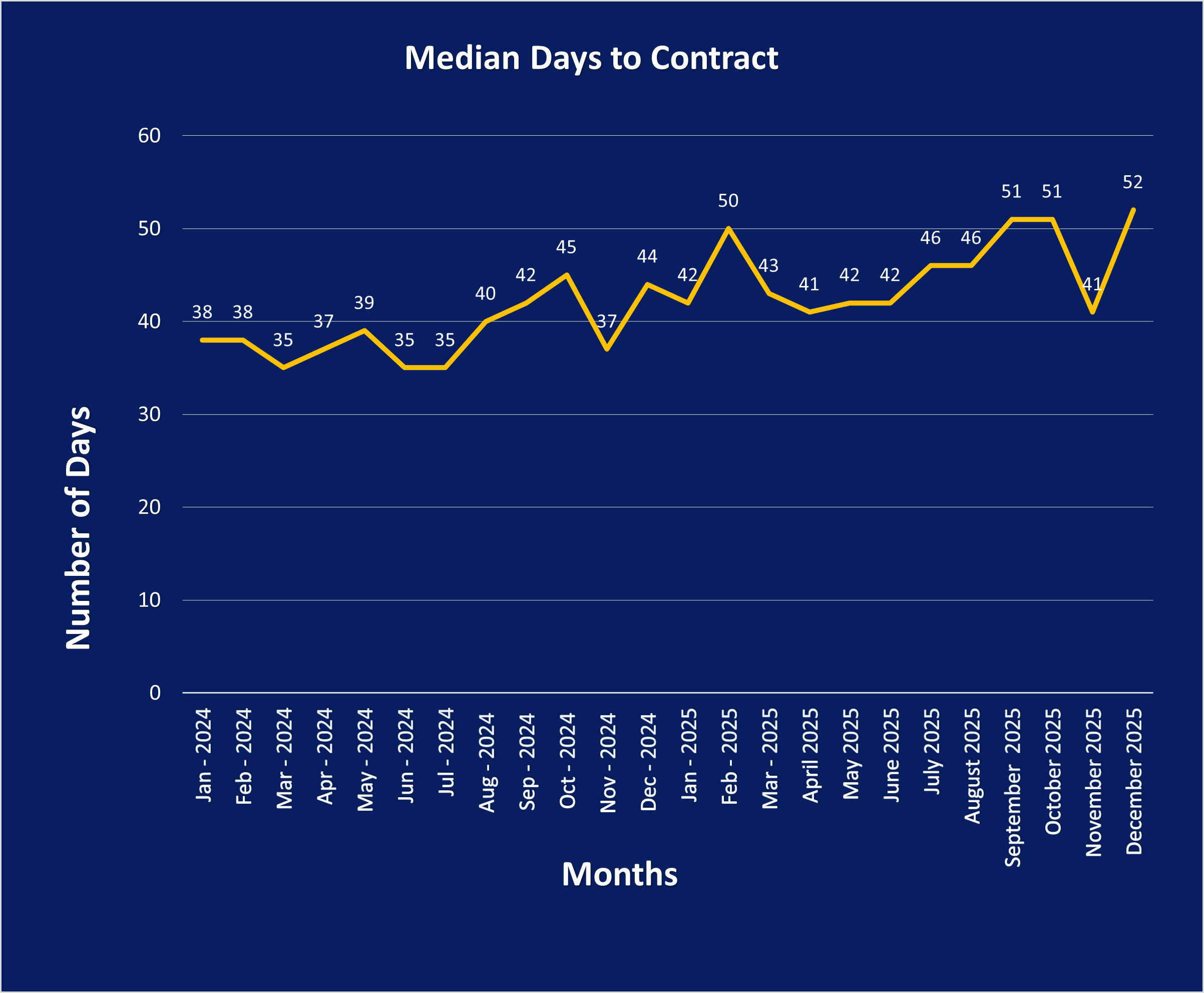 The bigger change has been how long it takes homes to go under contract. At the start of 2024, the typical home took about 38 days to get a contract. As the year went on, that number gradually climbed into the mid-40s, hitting 45 days in October 2024. In 2025, we saw even more slowdown, with 50 days in February and low 50s later in the year (around 51–52 days by fall and December). For buyers, this is good news: it usually means less pressure, more time to think, and more room to negotiate. For sellers, it means pricing and presentation matter more than ever. Homes that are priced right and show well still move—but the “throw it on the market and wait for multiple offers” strategy isn’t as reliable anymore.